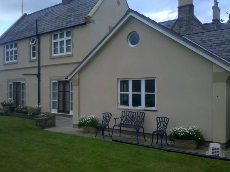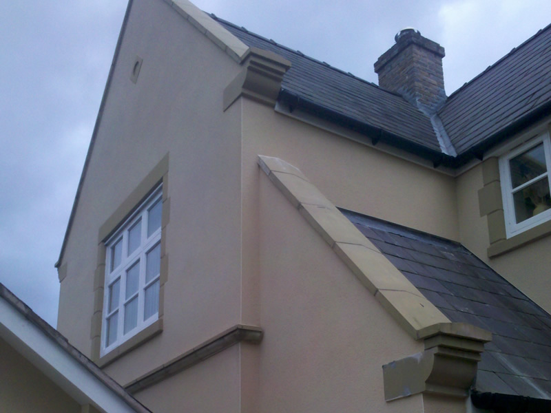Work Completed: Knock-off existing damaged render and re/render using Weber Rend-aid & mesh cloth and finished using Weber Pral M system in Ocre Rose.