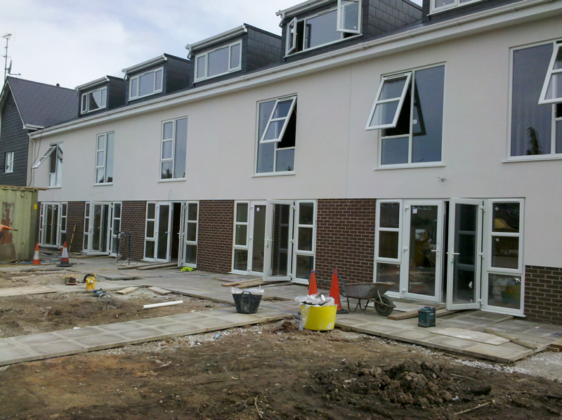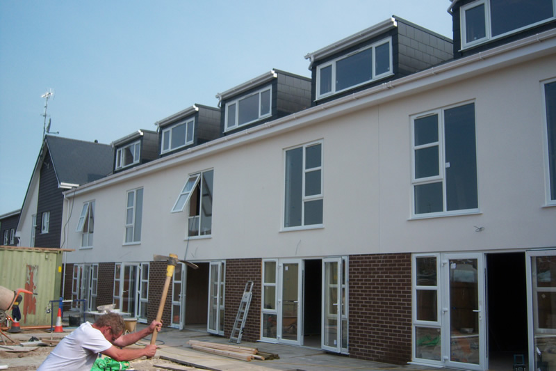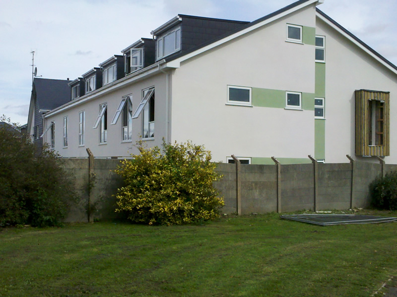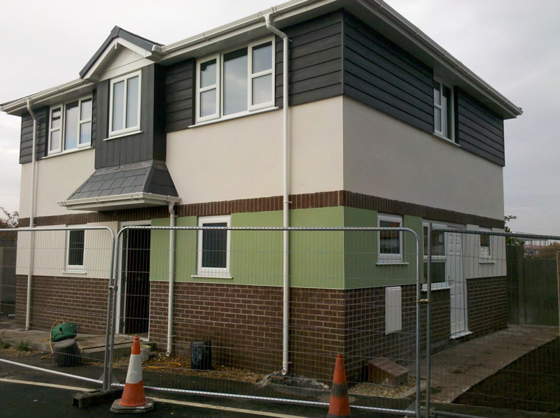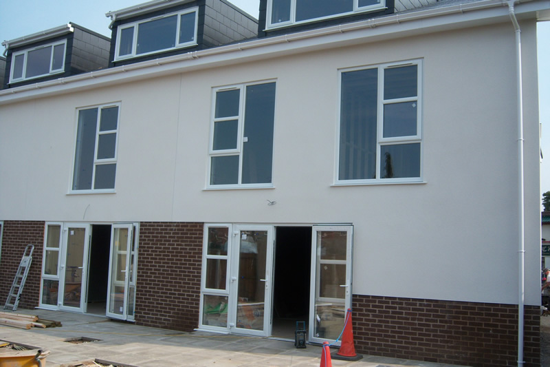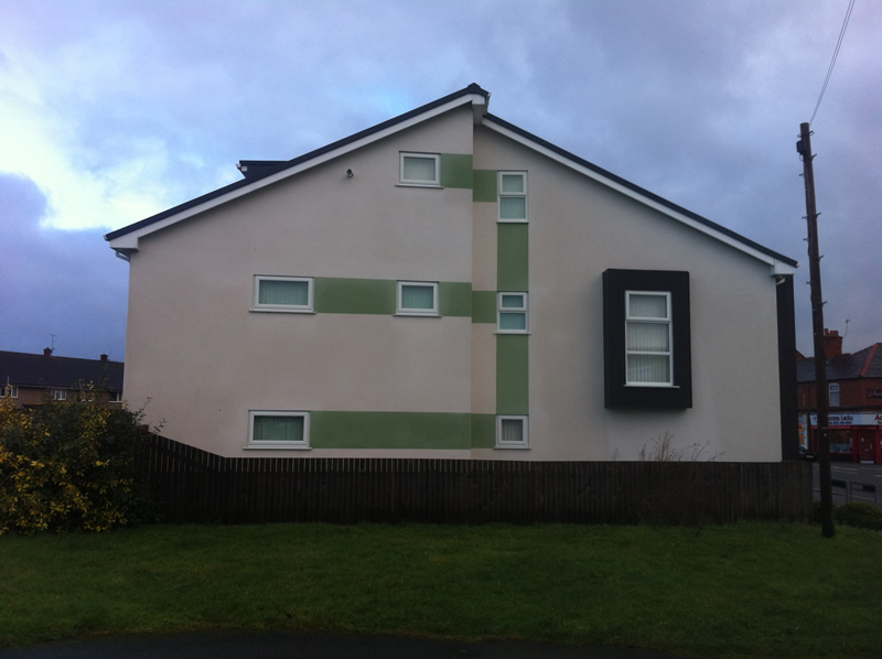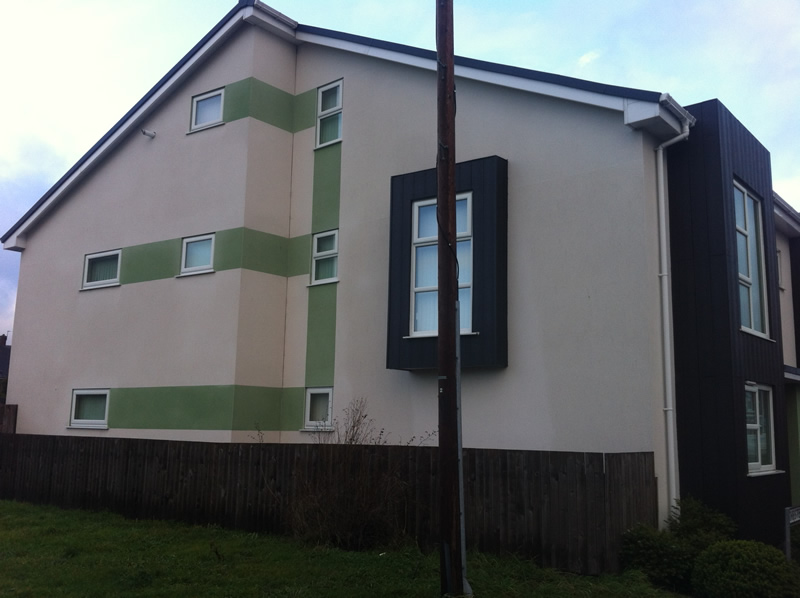 Work Completed: Rendering to appartments & houses using Weber Pral M System in Chalk & sage green & and internal plastering.